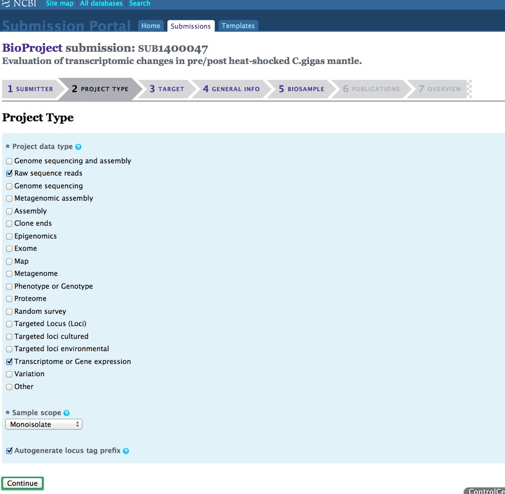 This post provides a brief summary of what’s involved in the process (mostly via screen shots) and attempts to identify the various pitfalls/pains that I’ve already stumbled through trying to get a set of six FASTQ files submitted properly.
