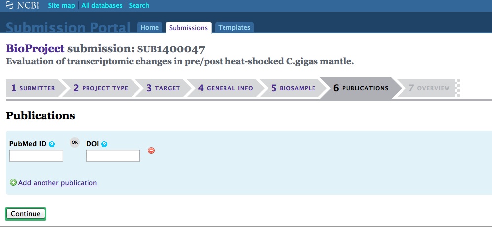 Create SRA. This will end up encompassing any BioProject(s) and BioSample(s) that you need to include to describe the sequencing files you’re submitting to the SRA.