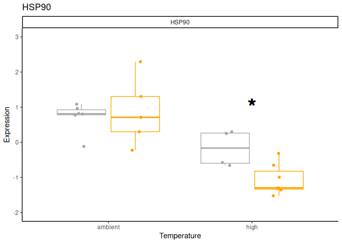 - Across lifestages (except for juveniles) HSP90 decreases in expression under elevated temperature.