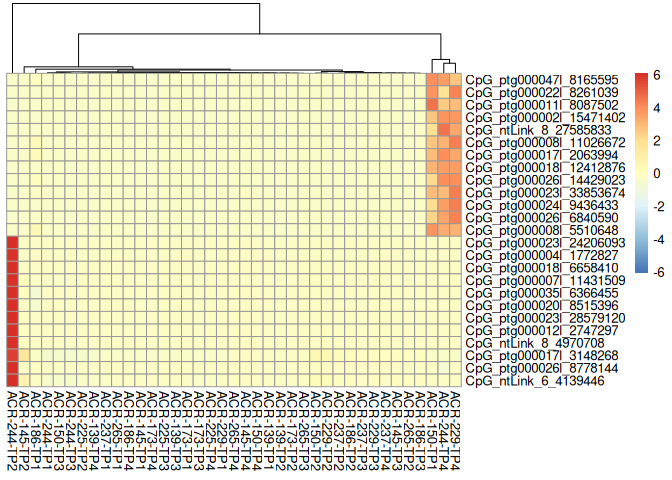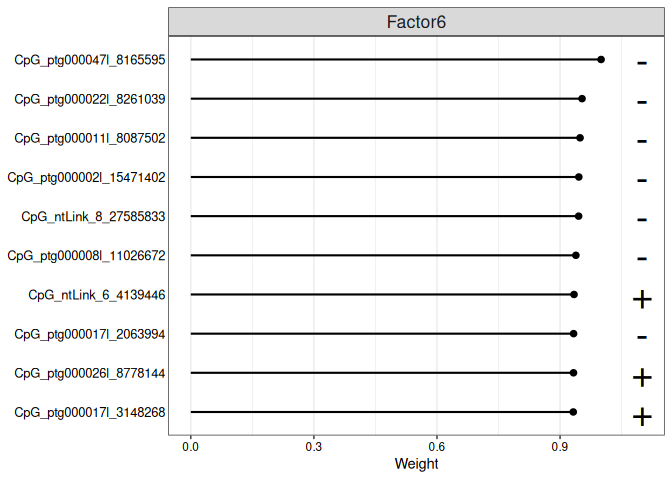 top_methylation cat("Top methylation by absolute weight for factor 6:", top_methylation, "\n")