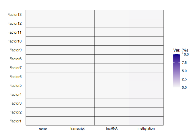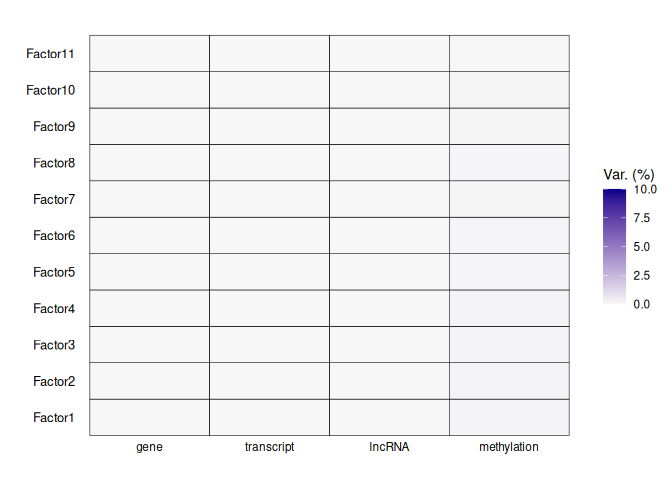 Switching to MOFA2 allowed me to get around that limitation. Additionally, MOFA2 is really, really well-documented, including a number of tutorials to walk the user through analysis. It’s very nice.